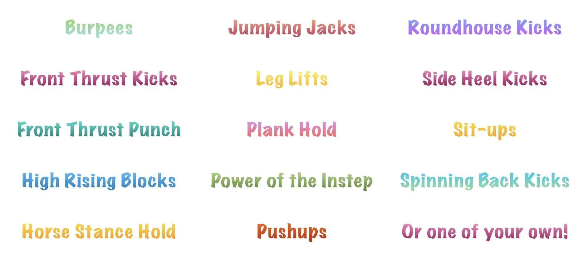 Make sure to record your activities and numbers and hand them in after the break. Tracking sheets are available at the Kwoon or you can just use a scrap piece of paper. If you have any questions, please reach out to an instructor or use the Global Forum in our WhatsApp community.