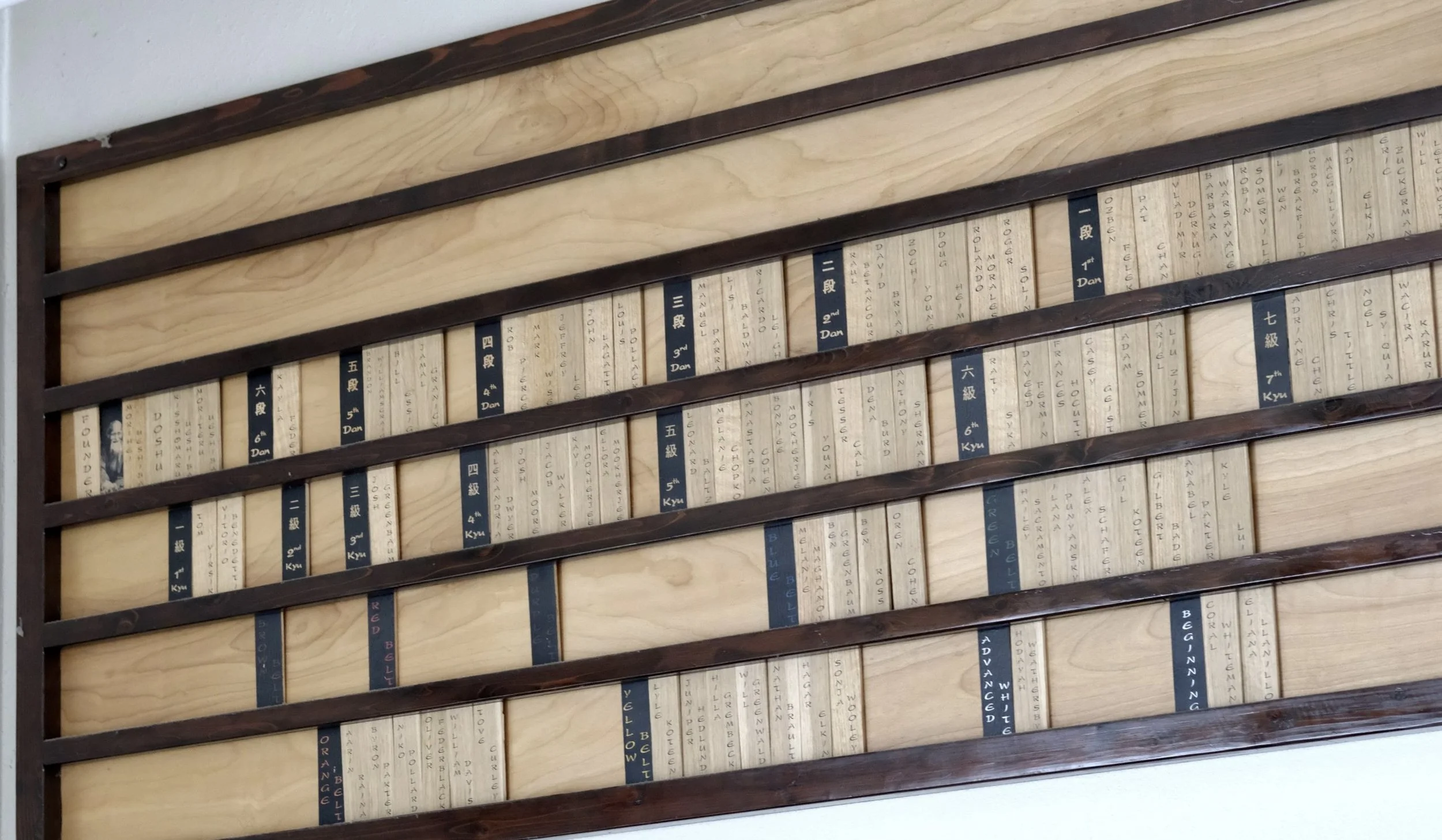 You will soon see an awesome change on our walls; the addition of a traditional structure called a nafudakake, a rack that will hold nafuda, or wooden name plaques for each of our members. This is a way to show the clan hierarchy.