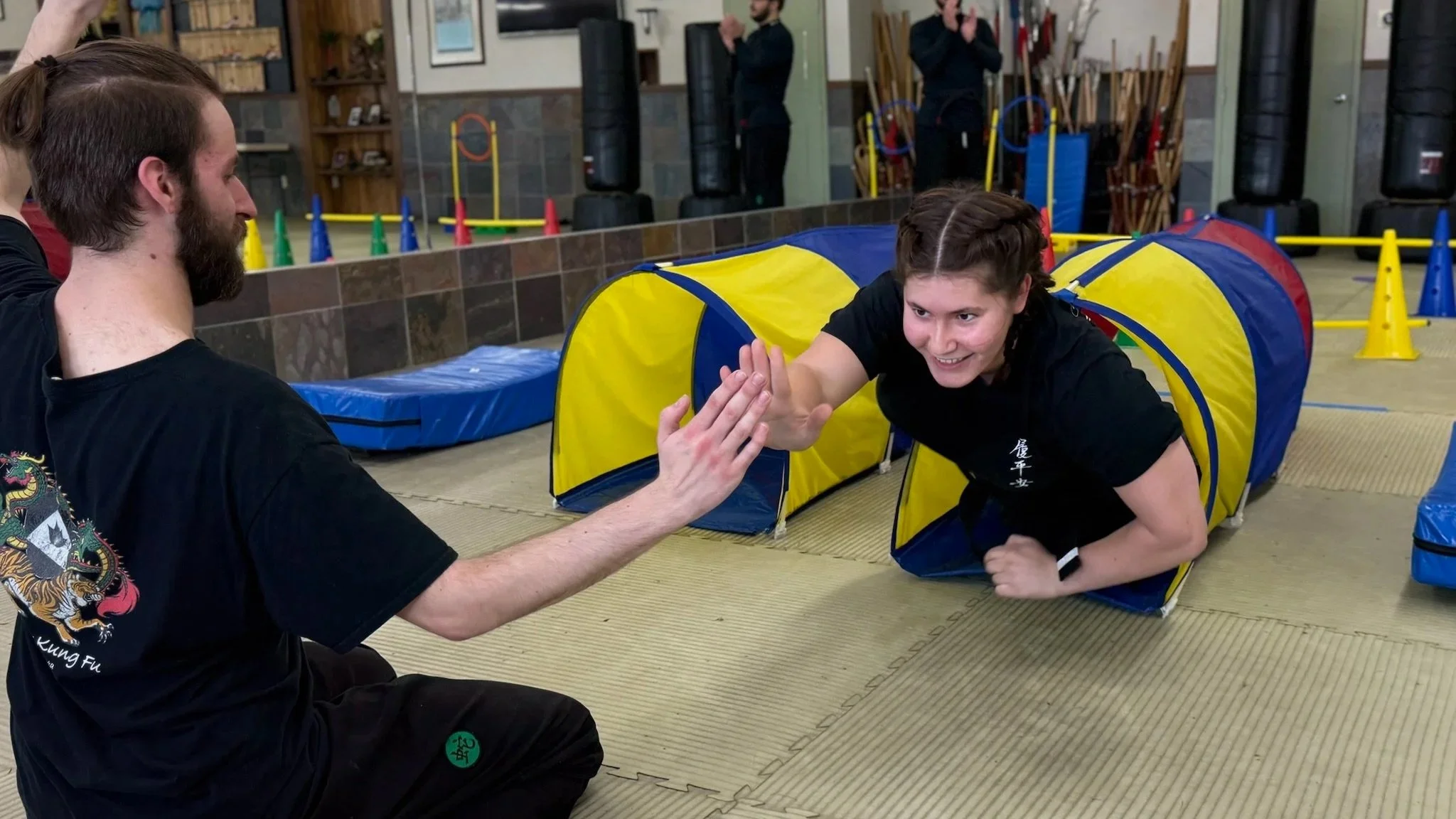 The third reason- to have fun! The list of events open to each group reflects the ages and expectations. Of course we have events such as sparring, forms and weapons. But we also have obstacle courses, relays and pool noodle sword fighting. We want every student working hard to prepare for the tournament, and we want every student to feel comfortable and enjoy the experience.