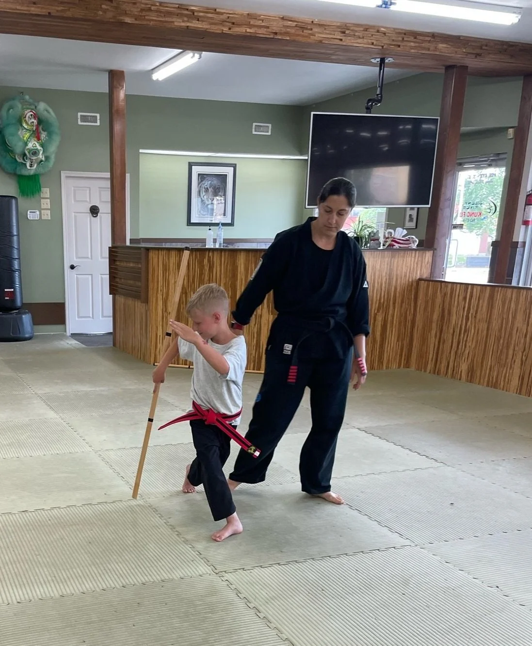 Kung Fu At Home: Ask your child to show you the opening bow to our Stick form. (If they don’t have a stick at home, a broom or mop works just as well!)