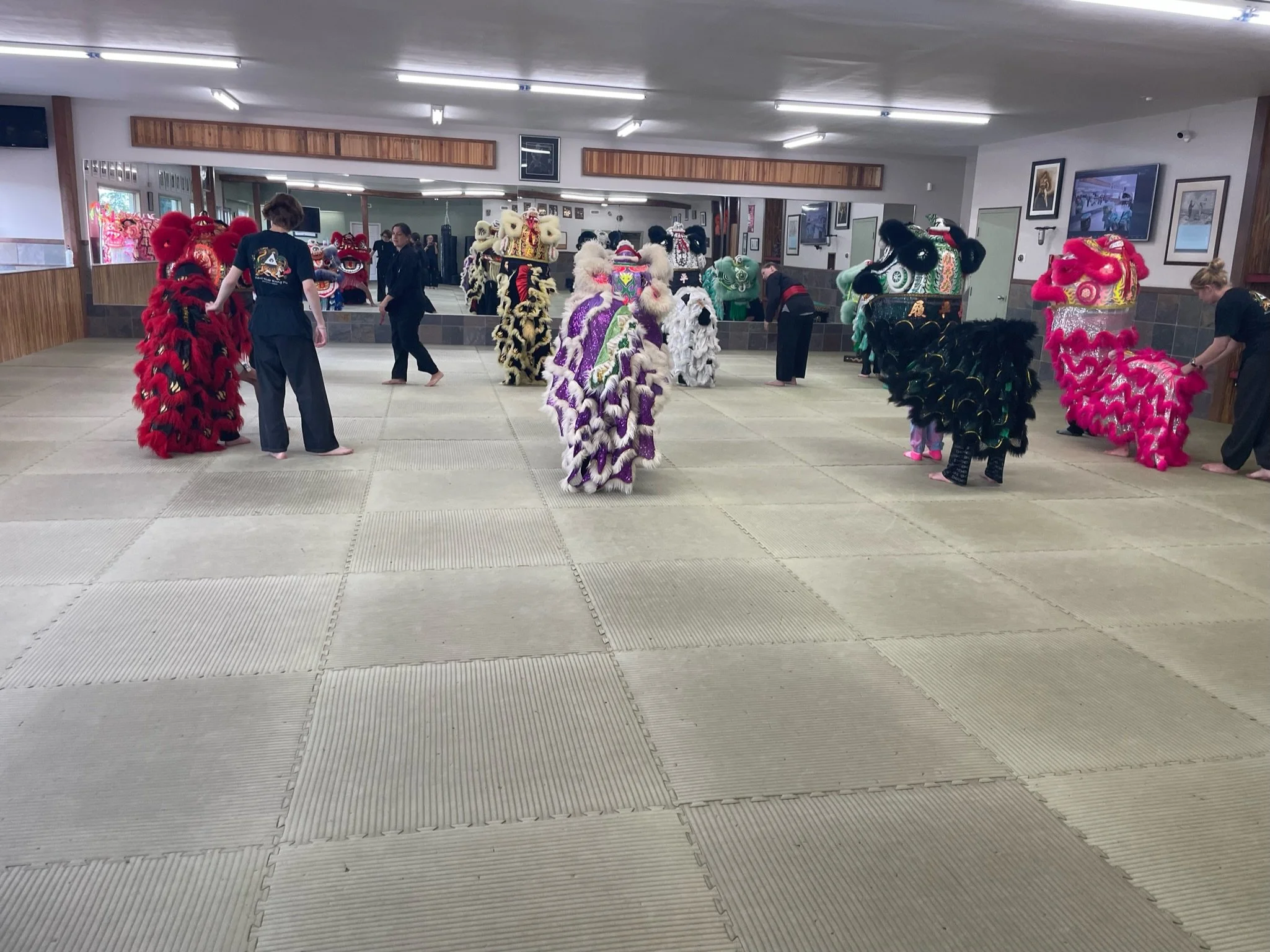 As a traditional martial arts school, lion dancing is an integral part of our Kung Fu training, not only for the historical significance, but for the ways it supports and improves all the other areas of our Kung Fu. Stamina, strength and control…speed, agility and power…all things that both good lion dancers, and good martial artists, need. If you want to improve your kicks…lion dance. If you want to improve your sparring…lion dance. If you want faster and more powerful punches…lion dance. If you want to develop your eye for detail…lion dance.